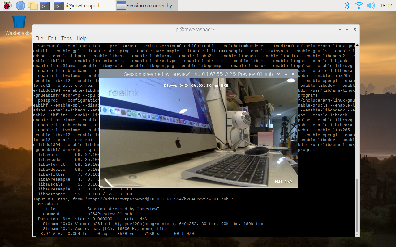 The ReoLink camera provides both a high-resolution feed, the above feed, and a smaller low-resolution feed. For example, if you substitute the _main in the RTSP URL with the word _sub, you will see the following.