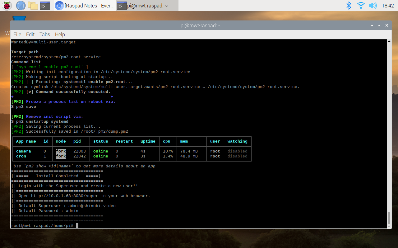 ... Start Shinobi and set to run on boot: yThen get a cup of tea as the installation will take a while.
