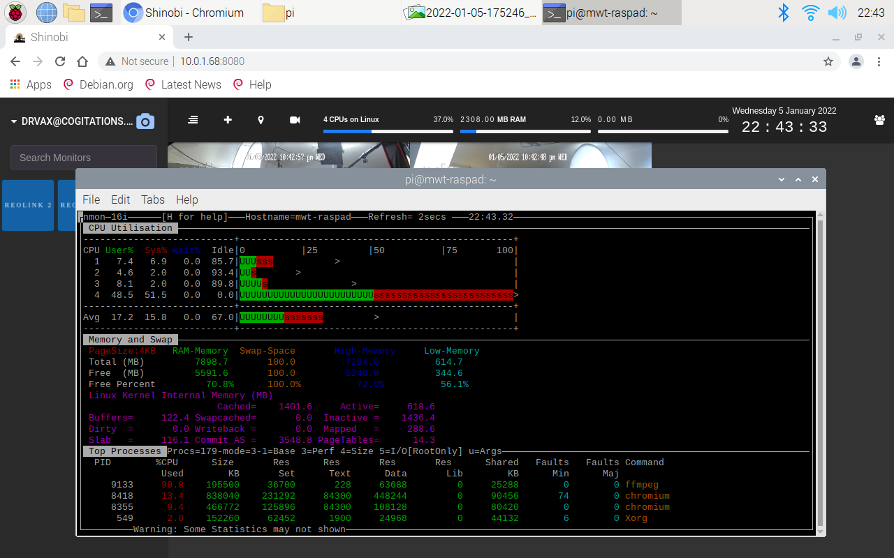 The RasPad 3 hardware is excellent, and the performance of this application is limited by the quality of the cameras and the camera's RTSP implementation. Shinobi recommends switching to RTMP to reduce lag, but that protocol is not available on the tested cameras.