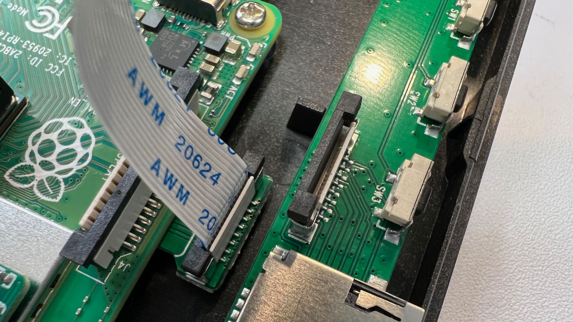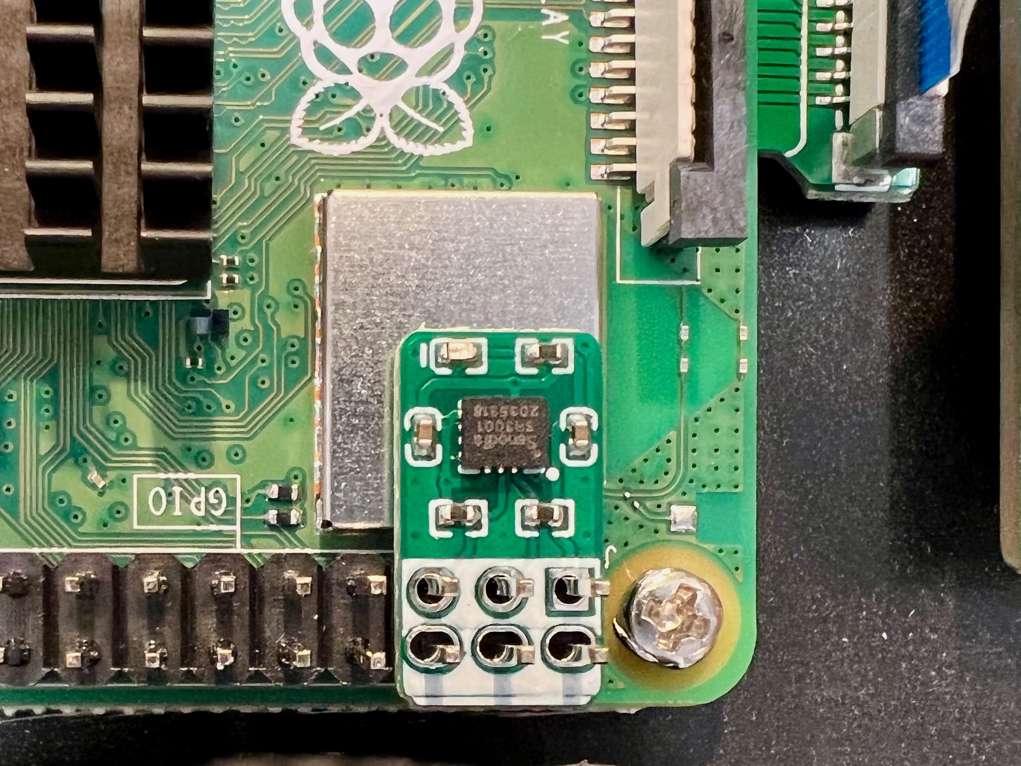 I found it easier to connect the cables before screwing the Raspberry Pi in place.