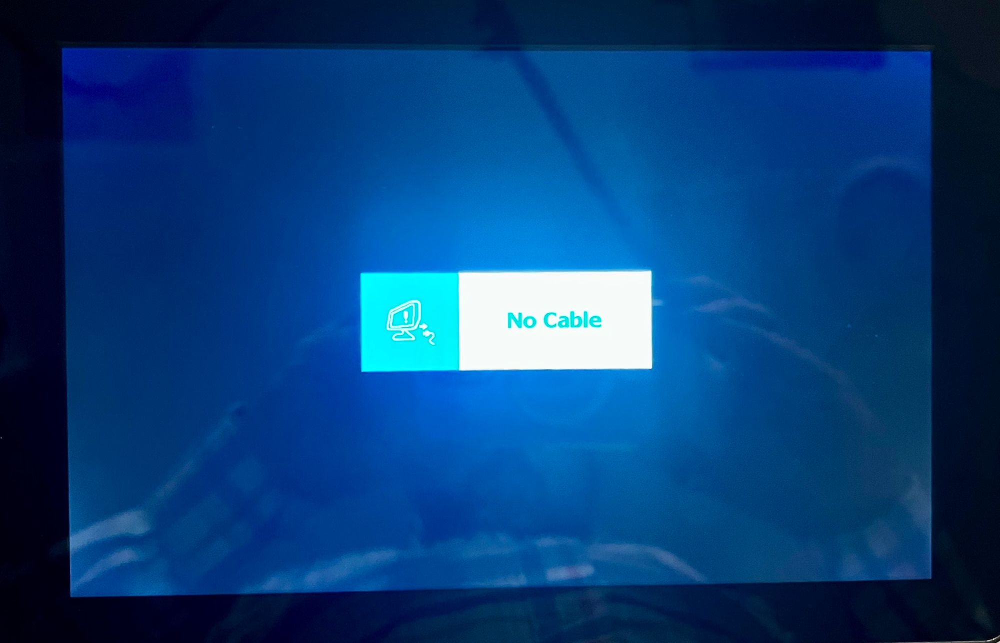 Ignore this message. The first time I saw this, I turned the machine off, opened it up, and rechecked the HDMI cable. Nothing was wrong. This message displays every time the machine boots and goes away in 2 to 3 seconds.